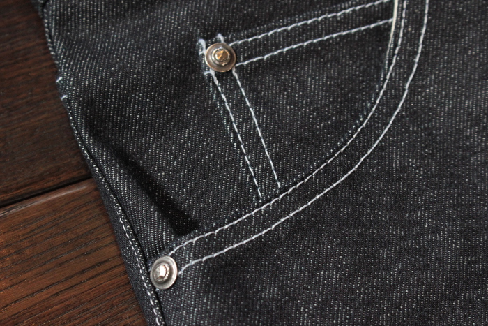 ・14.5oz ・セルヴィッチ赤耳デニム ・シルバー(ボタン×1 リベット×3) |