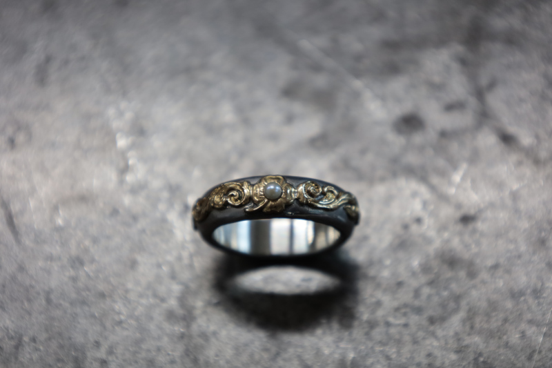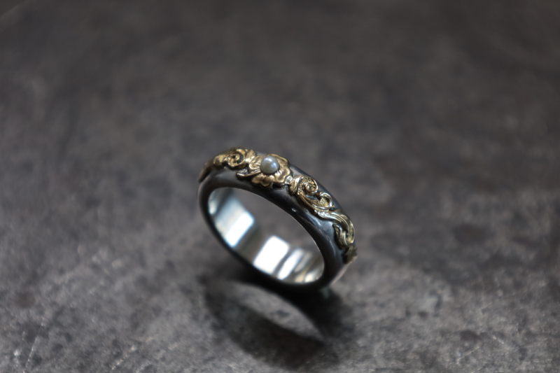 7mm half round ring/K18 clover/K18 scroll/Akoya pearl