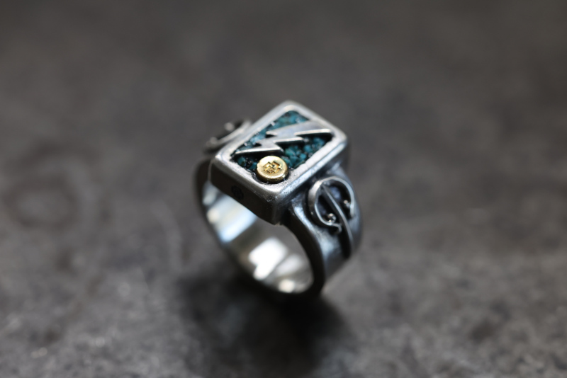 square signet/lightning/K18 metal/chip turquoise