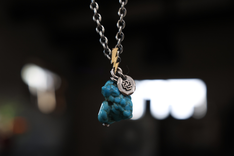 kingman turquoise/K18 lightning bail necklace